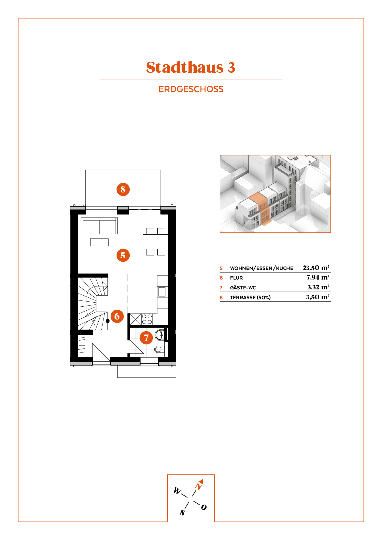 Jedes Stadthaus hat eine Terrasse und 2 Balkone, jeweils mit Sichtschutz zum angrenzenden Nachbarn.